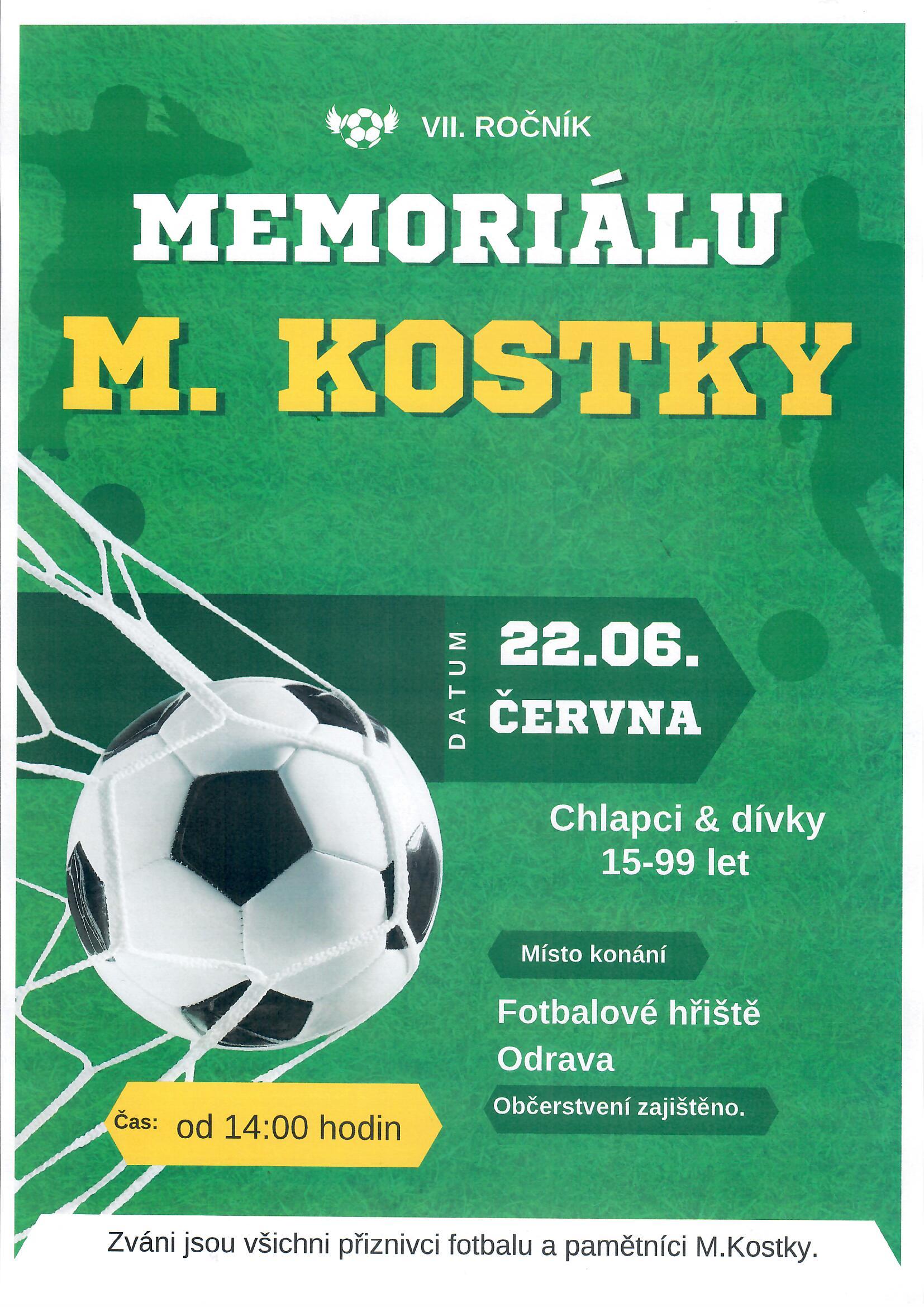 Zveme všechny příznivce fotbalu na VII. ročník Memoriálu M.Kostky.